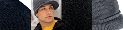 This fitted knit hat is the epitome of casual cool with its stiff brim with rounded edge. Features a 3-inch cuff. Fabric 100% acrylic