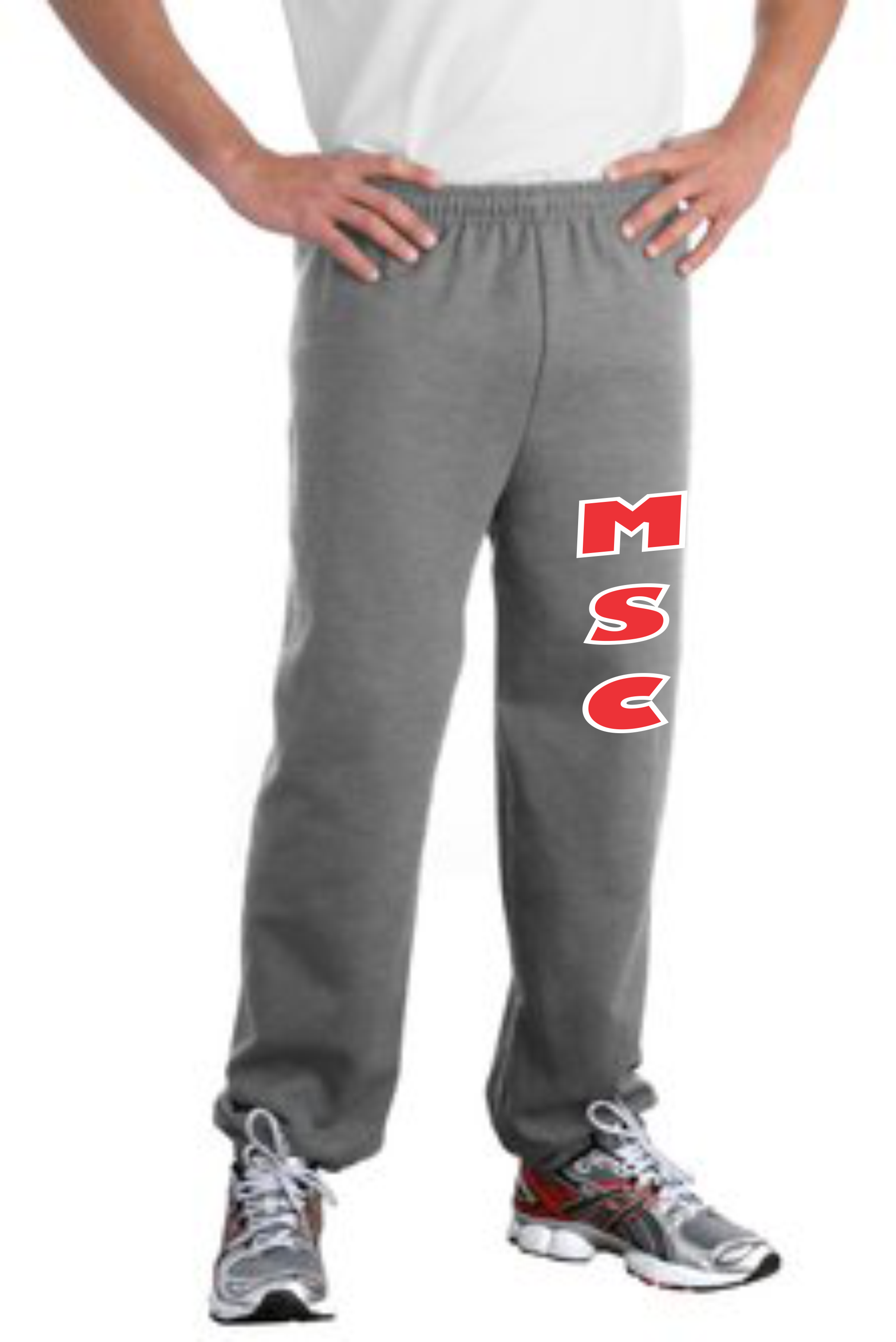 MSC Seatpants Youth and adult sizes 50% cotton, 50% polyester Air jet yarn creates a smooth, low-pill surface for printing Slightly tapered leg with open-bottom hem Covered elastic waistband with drawcord Differential rise for a better fit