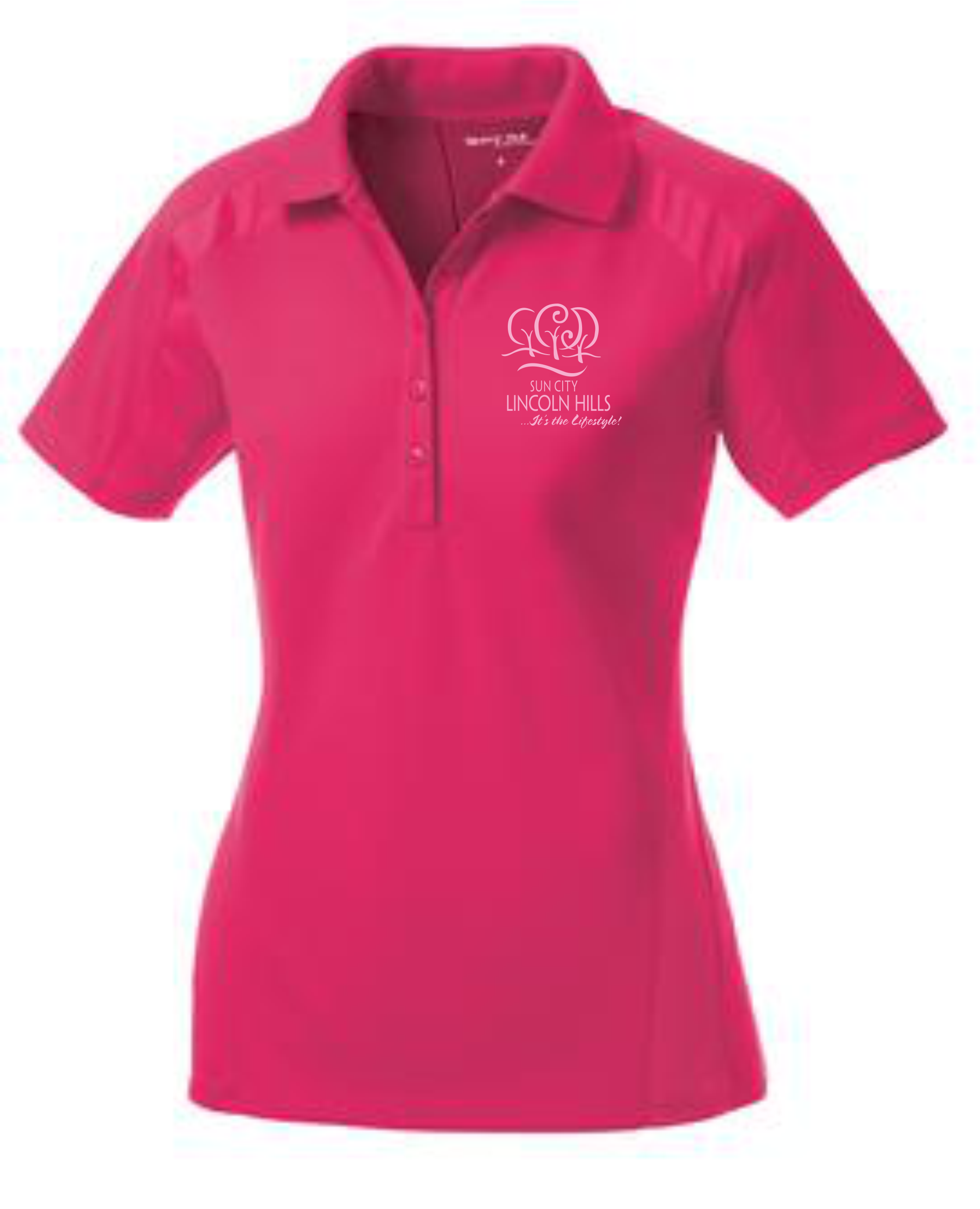 Sun City Logo will embroidered in white on the front lefct chest. Ventilation panels on the back, sides and shoulders keep you cool, while Dri-Mesh Pro technology helps manage moisture in this high-performing shirt styled just for her. 3.9-ounce, 100% polyester mini pique on body, 96/4 poly/spandex stretch mesh on back, side and shoulder panels Gently contoured silhouette Tag-free label Flat knit collar 5-button placket with dyed-to-match buttons Raglan sleeves