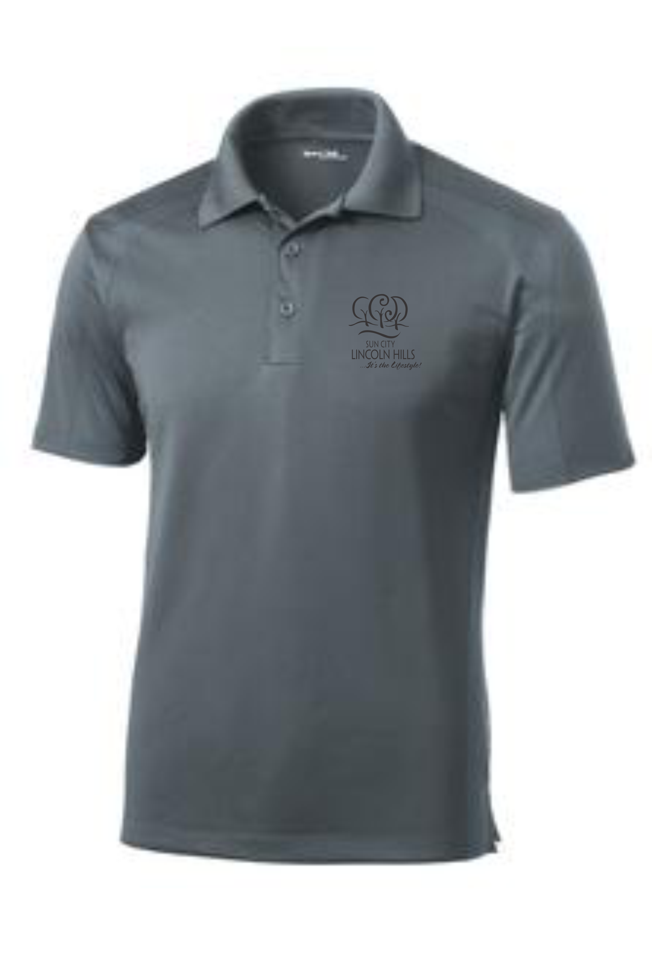 Performance Polo with Sun City Logo embroidered on the front left chest. Strategically placed ventilation panels make a cooling difference when combined with the ultra-dry technology of Dri-Mesh Pro. Stretch-enhanced gussets add mobility and breathability. 3.9-ounce, 100% polyester mini pique on body, 96/4 poly/spandex stretch mesh on side panels and locker patch Tag-free label Flat knit collar 3-button placket with dyed-to-match buttons