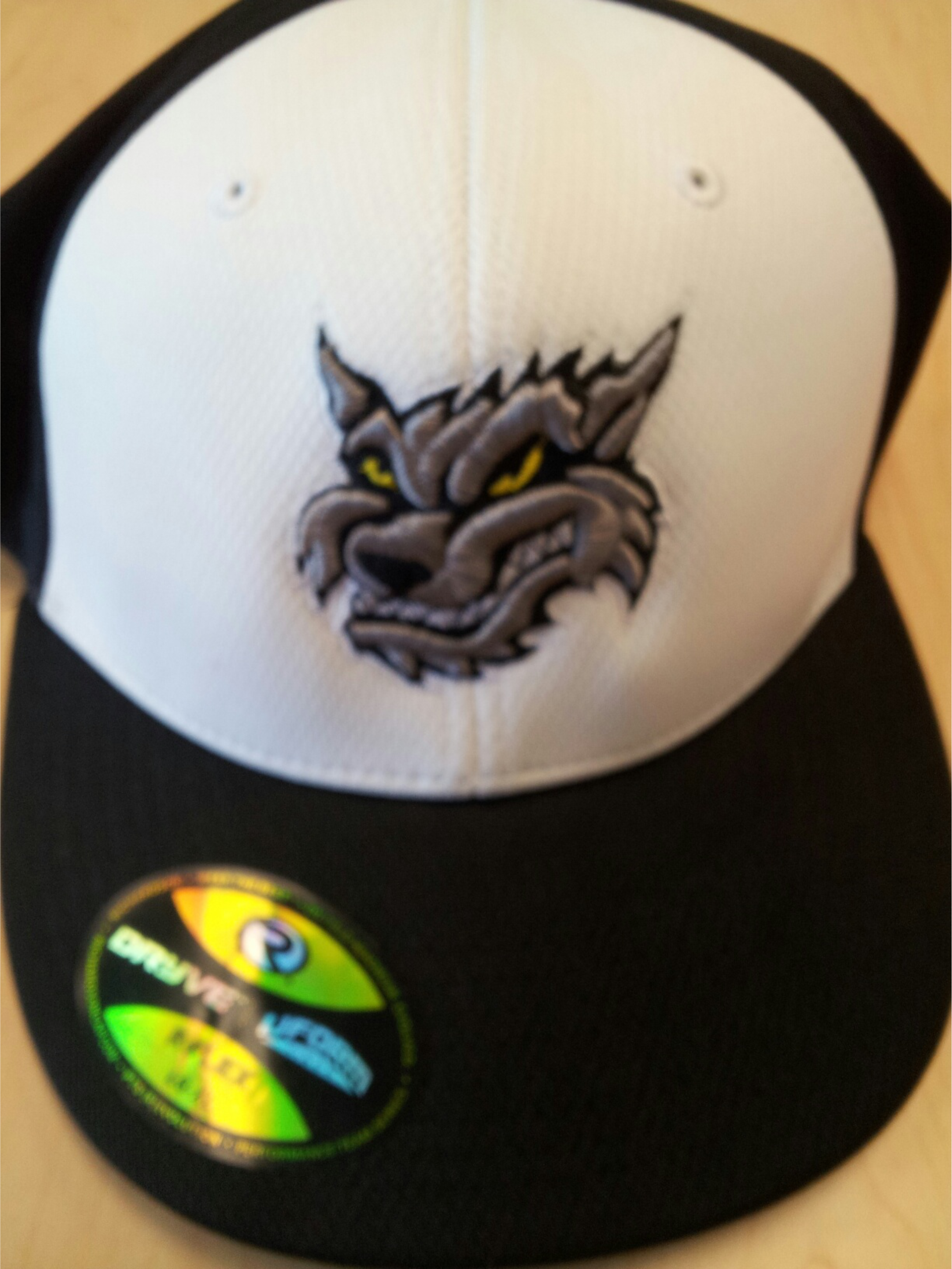 Lobos Cap with wolf head. Evolved polyester-spandex fabric with moisture-wicking functionality; StayDri comfort-stretch sweatband; ProVisor with eight rows of stitching; anti-glare charcoal-color undervisor and trim features.