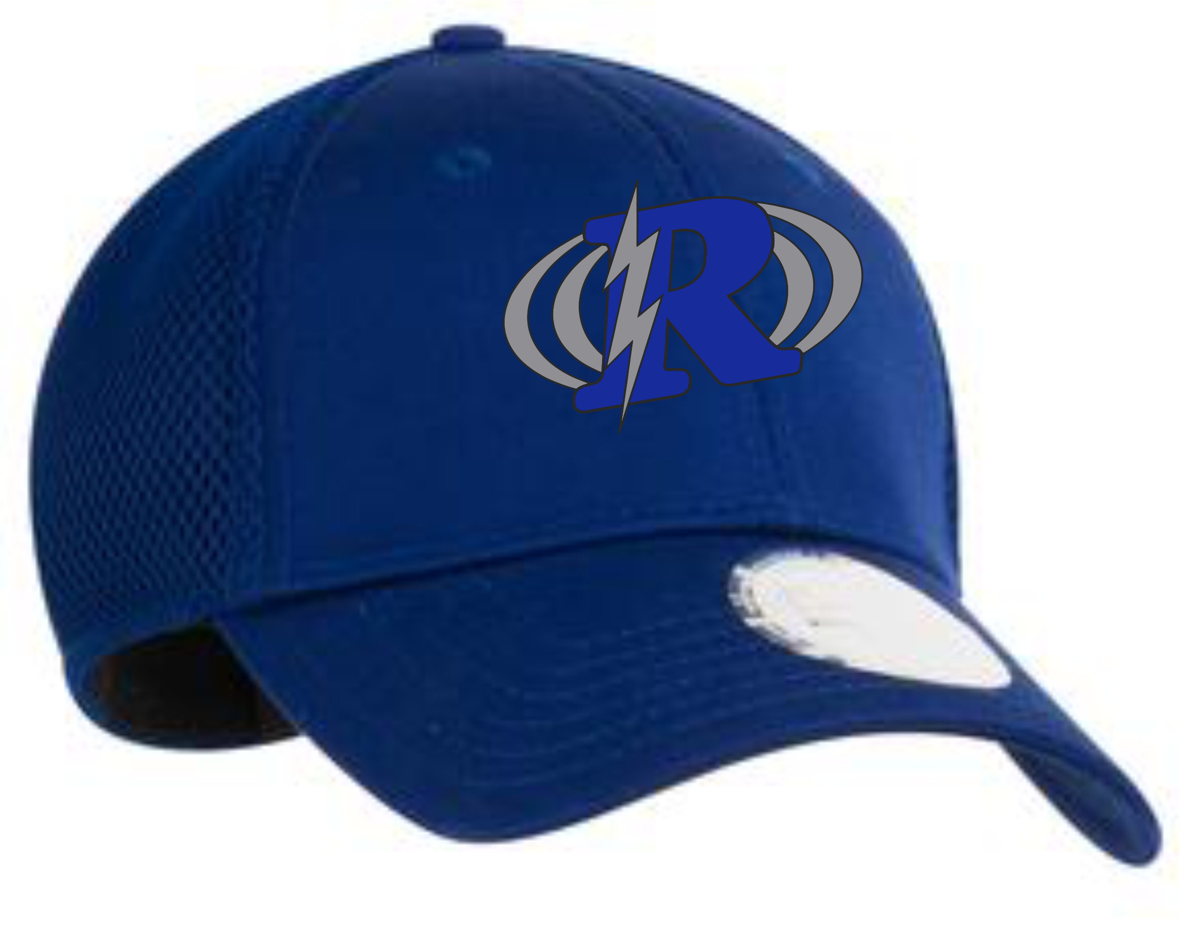 Rocklin High Logo with Water Polo Ball on the back. Get into the game without losing your cool. Spacer Mesh panels on hat back allow cooling ventilation on even the warmest days. Fabric: 100% cotton in front two panels; 57/43 poly/cotton Spacer Mesh in mid and back panels Structure: Structured Profile: Mid Closure: Stretch fit