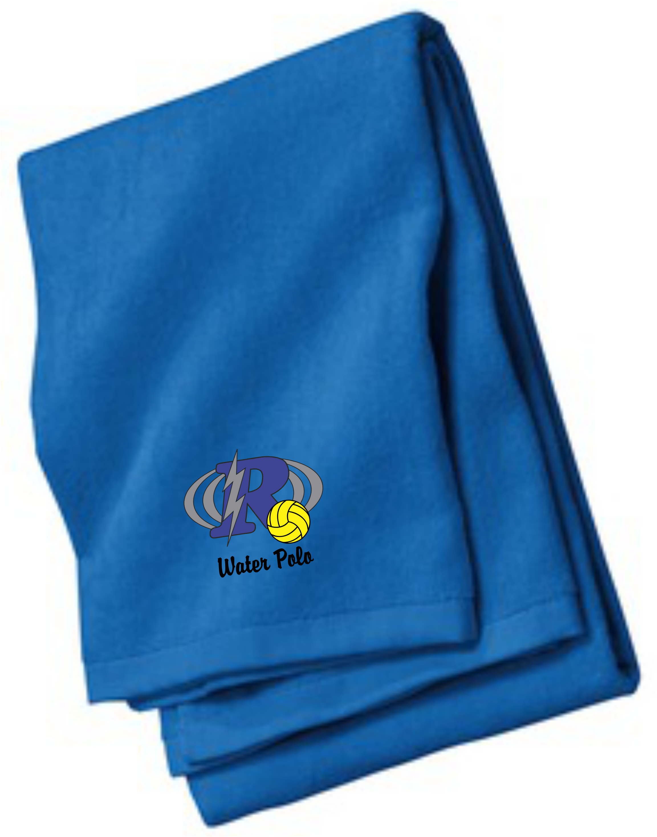 Towel with Rocklin Logo. Name can be added for an additional Charge. A necessity for water recreation, our beach towel is highly absorbent and fully hemmed for durability. 100% cotton terry velour Dimensions: 35"w x 62"l; 14 lbs/doz