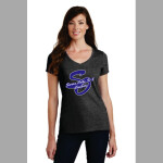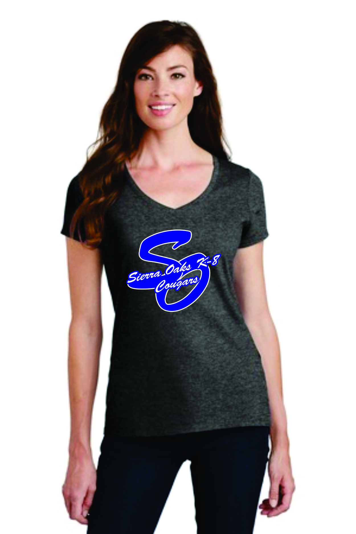 - Ladies shirt is V-neck and is 4.3 ounce ring spun cotton and only comes in WHITE or BLACK or HEATHERED NICKEL